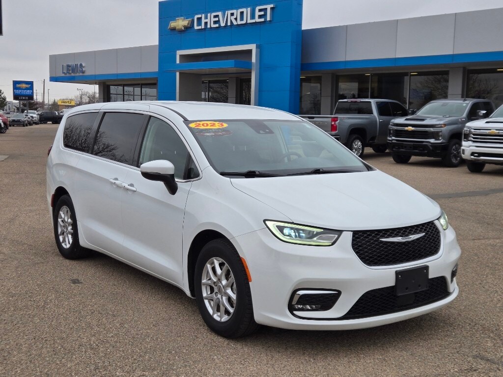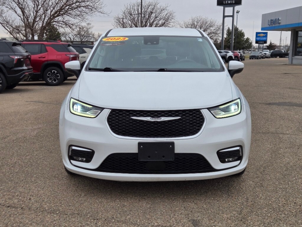 This mini van keeps you comfortable with Auto Climate. This unit is pure luxury with a heated steering wheel. See what's behind you with the back up camera on this 2023 Chrysler Pacifica . This 2023 Chrysler Pacifica comes equipped with Android Auto for seamless smartphone integration on the road. Start it from inside with remote start. This unit's Lane Departure Warning keeps you safe by alerting you when you drift from your lane. This model has auto-adjust speed for safe following. This 2023 Chrysler Pacifica features a hands-free Bluetooth phone system. The leather seats in the Chrysler Pacifica are a must for buyers looking for comfort, durability, and style. The rear parking assist technology on this Chrysler Pacifica will put you at ease when reversing. The system alerts you as you get closer to an obstruction. This 2023 Chrysler Pacifica offers Apple CarPlay for seamless connectivity. The vehicle's Forward Collision Warning feature alerts drivers to potential front-end collisions.