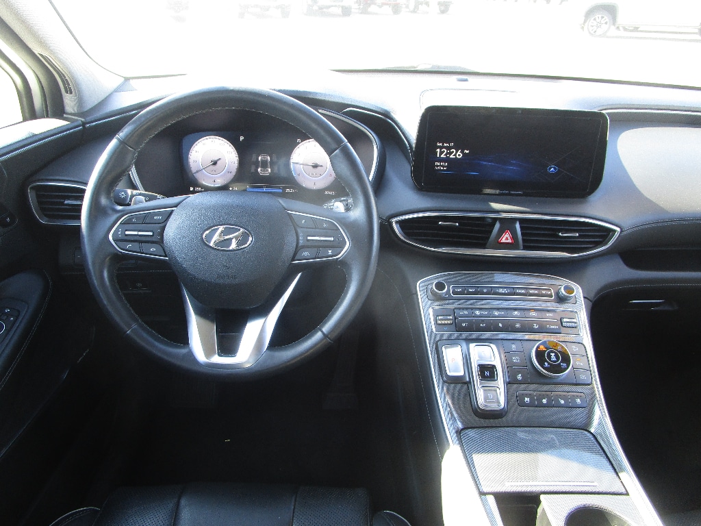 It features a hands-free Bluetooth phone system. Start this vehicle from inside with remote start. This model offers Automatic Climate Control for personalized comfort. The leather seats in this vehicle are a must for buyers looking for comfort, durability, and style. Protect this model from unwanted accidents with a cutting edge backup camera system. This vehicle stays safely in its lane with Lane Keep Assist. This unit offers Android Auto for seamless smartphone integration. This mid-size suv offers Apple CarPlay for seamless connectivity. The installed navigation system will keep you on the right path. Keep your hands warm all winter with a heated steering wheel in this Hyundai Santa Fe . The Hyundai Santa Fe gleams with an elegant silver clear coated finish. Set the temperature exactly where you are most comfortable in the vehicle. The fan speed and temperature will automatically adjust to maintain your preferred zone climate. Conquer any rainy, snowy, or icy road conditions this winter with the all wheel drive system on the Hyundai Santa Fe.