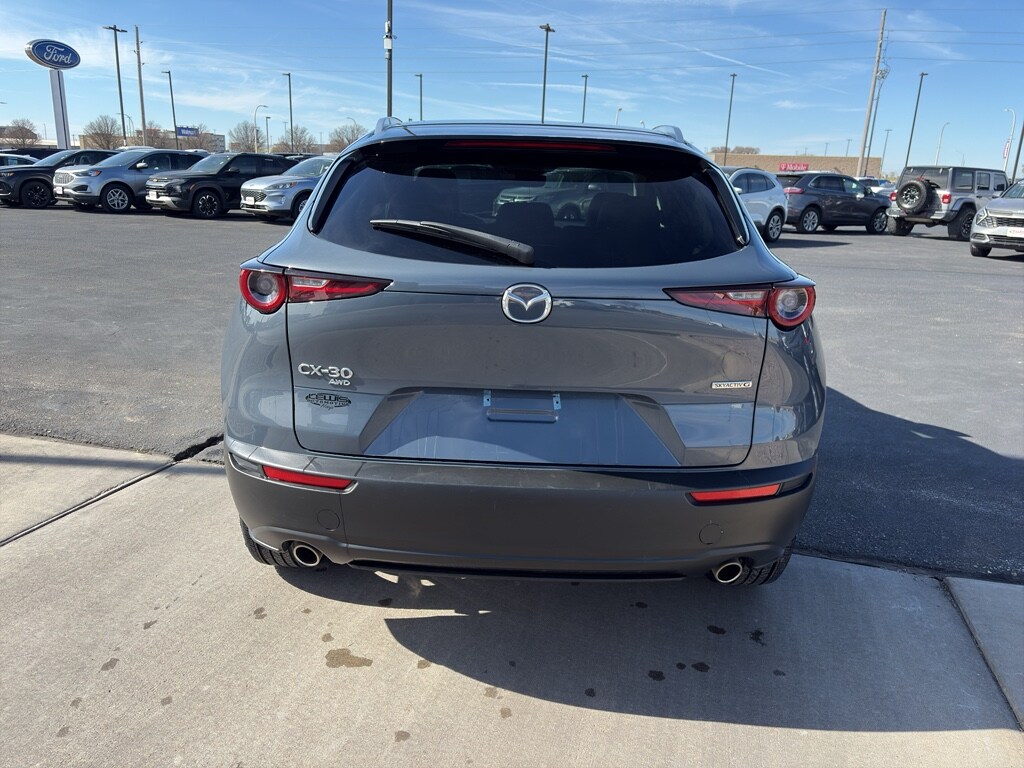 The vehicle offers Automatic Climate Control for personalized comfort. This 2024 Mazda CX-30 offers Apple CarPlay for seamless connectivity. This small suv offers Android Auto for seamless smartphone integration. Protect this Mazda CX-30 from unwanted accidents with a cutting edge backup camera system. This small suv stays safely in its lane with Lane Keep Assist. This model's blind spot monitor enhances safety. The leather seats in this Mazda CX-30 are a must for buyers looking for comfort, durability, and style. Never get into a cold vehicle again with the remote start feature on this unit. This model features a hands-free Bluetooth phone system. This small suv has a 4 Cyl, 2.5L high output engine. This small suv projects refinement with a racy metallic gray exterior. Maintaining a stable interior temperature in the Mazda CX-30 is easy with the climate control system. Quickly unlock this small suv with keyless entry. Conquer any rainy, snowy, or icy road conditions this winter with the all wheel drive system on this model.